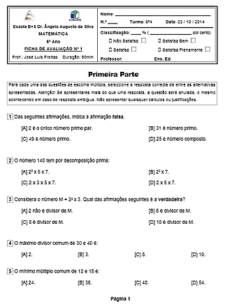 Testes de Avaliação 6º ano